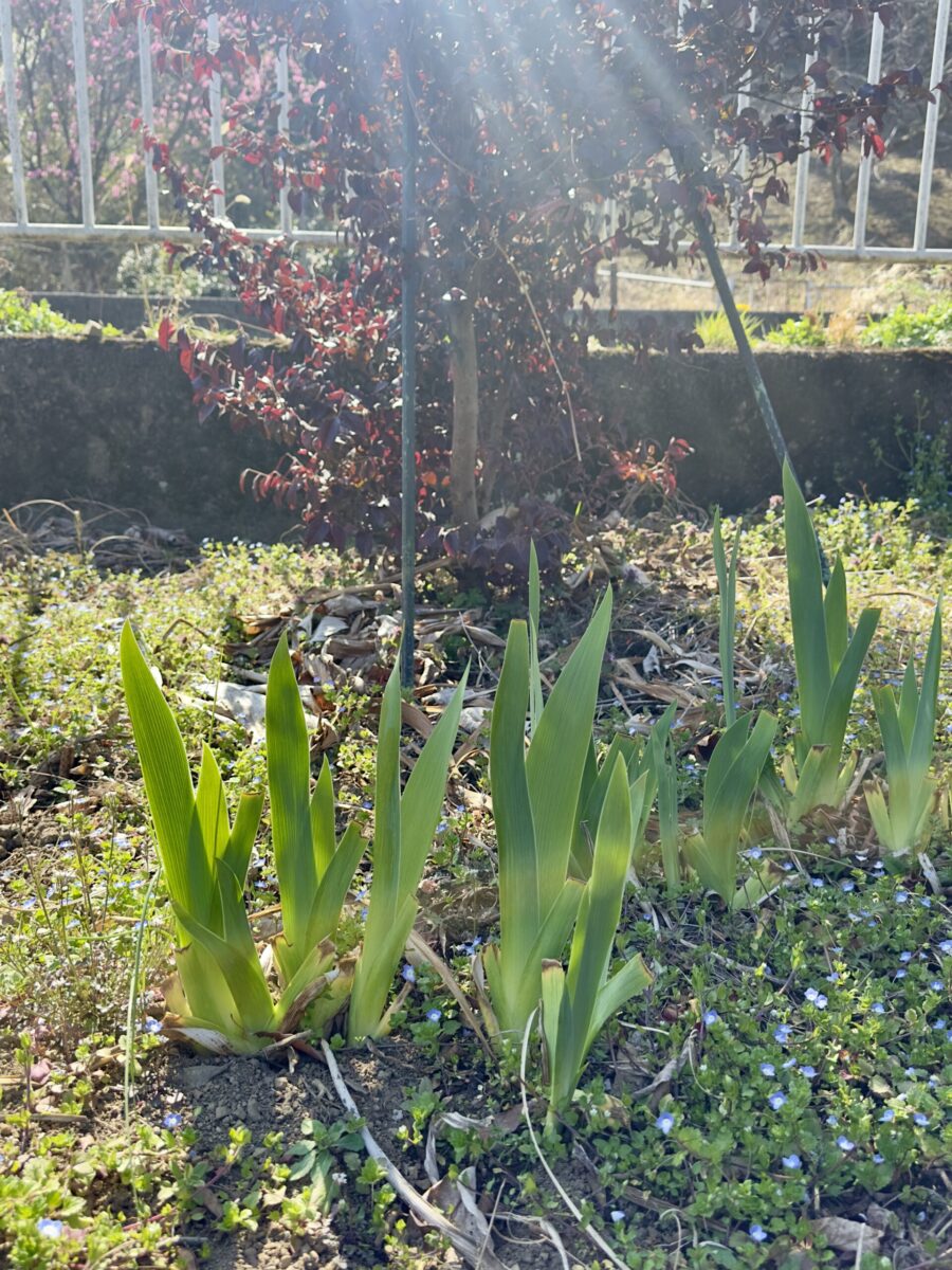 スイセンや、初めて植えたけど名前忘れちゃったやつ😅、チューリップにジャーマンアイリスなどグングンと成長中です。